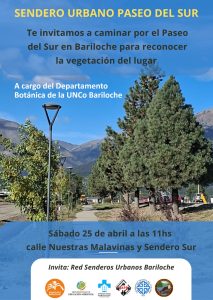 La Red de Senderos Urbanos Bariloche invita a la comunidad a participar de una caminata guiada por el Paseo del Sur, este sábado 25 de