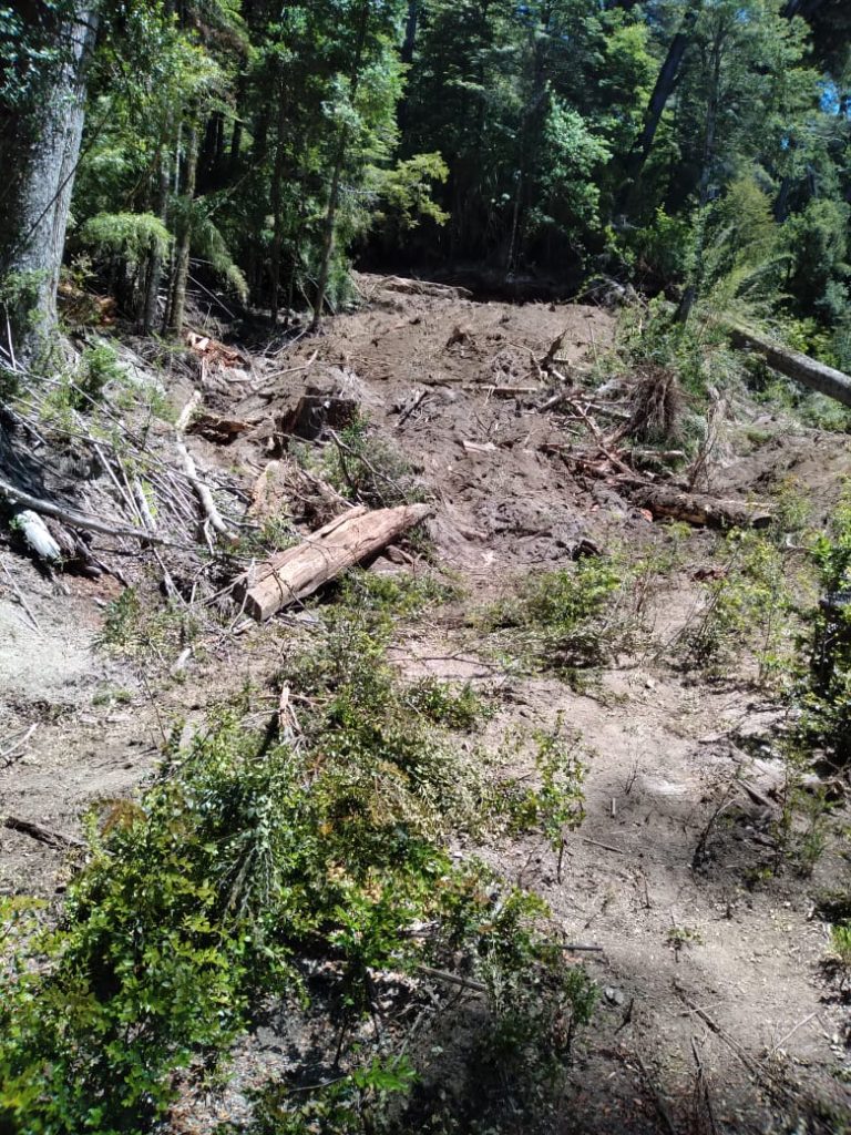 Al arribar al lugar se constató la apertura de un camino interno de entre cuatro y seis metros de ancho y unos 150 metros de extensión, al oeste de la Ruta Nacional Nº 231, a la altura del kilómetro 13. El desmonte ocasionó un impacto ambiental significativo, con corte y remoción de raíz de ejemplares nativos —principalmente coihues— además de arbustos, caña colihue y alteración del suelo en toda el área intervenida.