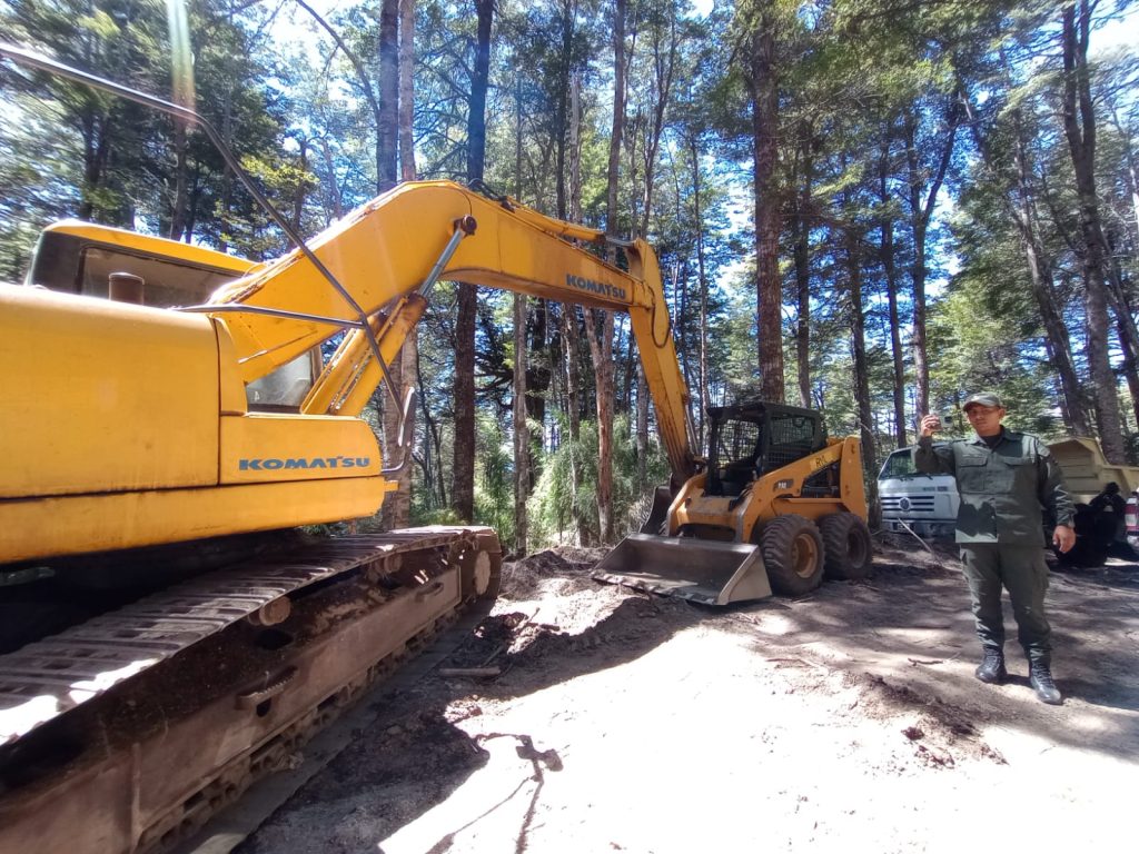 Se dispuso la inmediata paralización de la obra. En el lugar se identificó maquinaria pesada —un camión tipo volcador, una minicargadora y una retroexcavadora— operada por una persona perteneciente a una empresa de servicios y construcción de Bariloche. Como resultado del procedimiento, se secuestraron el camión volcador, la minicargadora, y la motosierra.