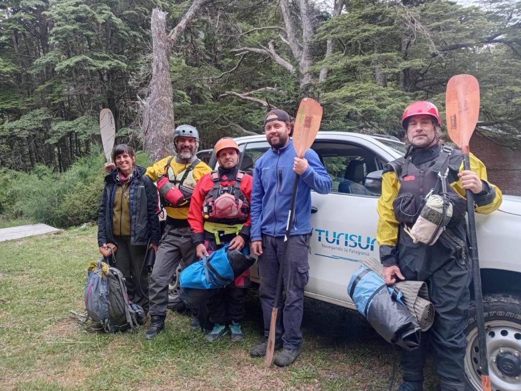 El grupo fue convocado desde el Departamento de Conservación y Ed. Ambiental del Parque Nacional Nahuel Huapi y contó con la colaboración de un reconocido Guía y prestador turístico de kayak, Nicolás Cantini, un kayakista con conocimientos en ríos del Parque y de la región, Martin Calvar y un investigador de CONICET y Guía de Kayak, Luciano Marpegan.