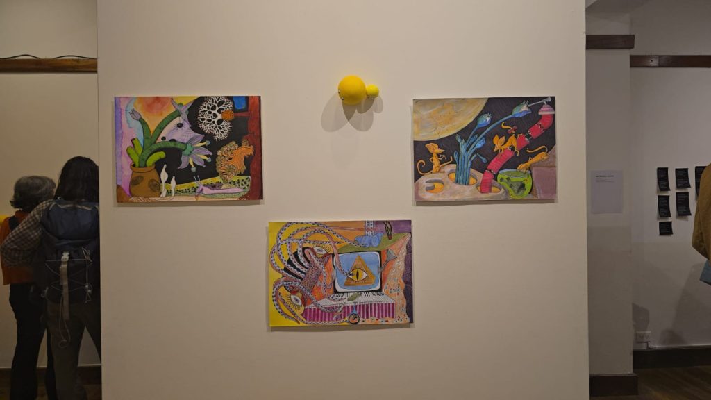 Por un lado, se presenta la muestra individual “Naturaleza humana”, de Gustavo Viozzi. La propuesta despliega un universo visual compuesto por pinturas, dibujos, objetos y escritos, donde plantas, animales y cuerpos —muchas veces en configuraciones híbridas— habitan espacios sumergidos y emergidos. Cavidades, conductos y aperturas conforman territorios en permanente transformación, invitando al público a un recorrido sensible e imprevisible.
